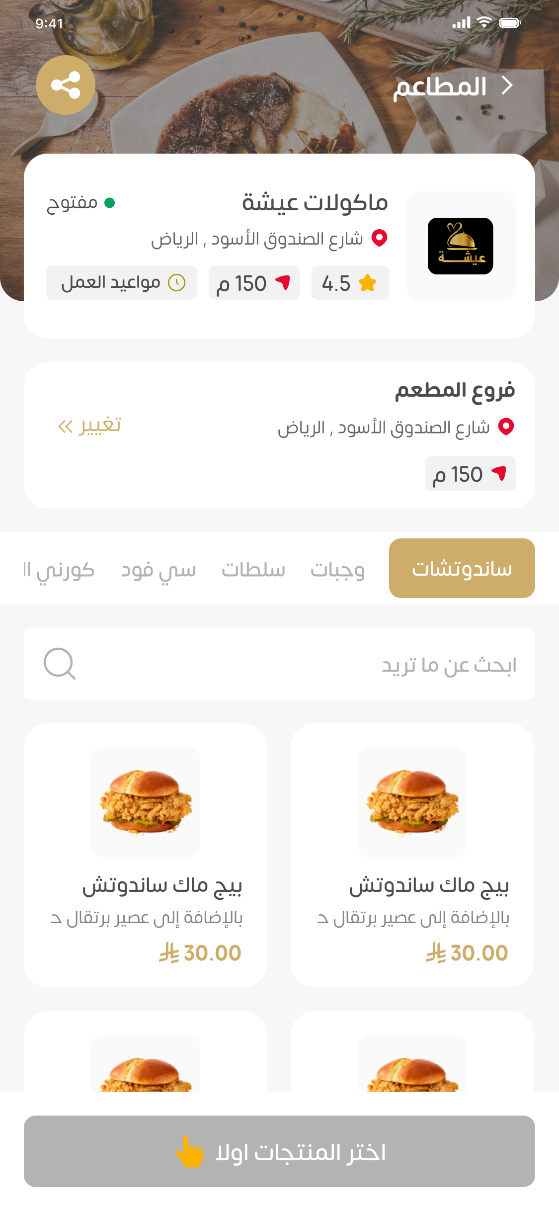 ابدأ باختيار القسم الرئيسي أو الفرعي، واستكشف المنتجات من الأسر المنتجة والمطاعم المتاحة في منطقتك.